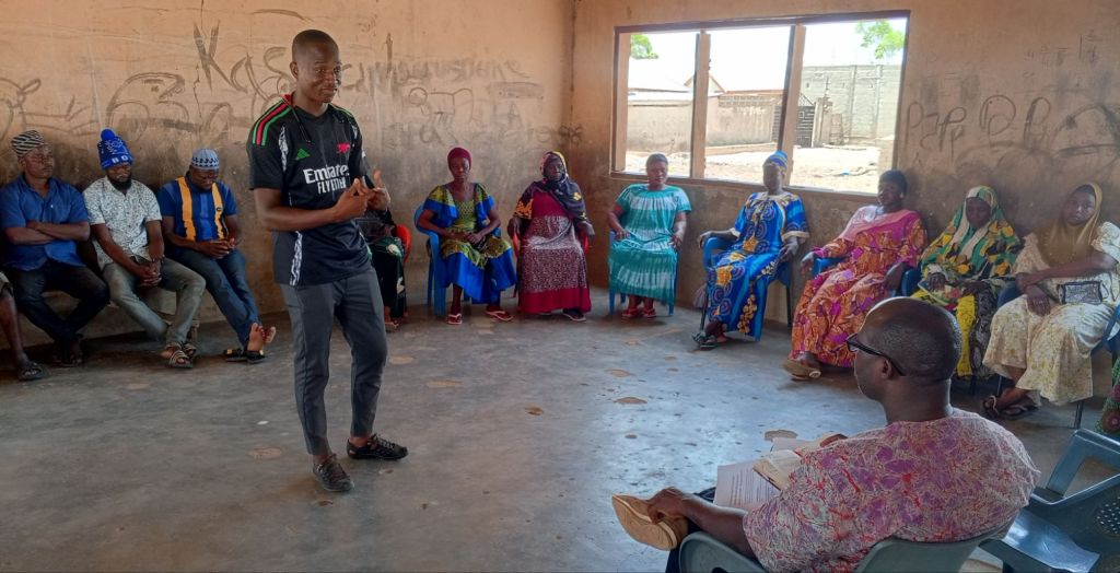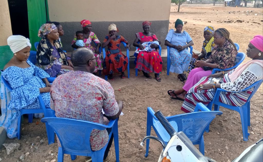 In Basyonde, Mr. Dasmani Alhassan, one of the trainees, engaged men, youth groups, and Village Savings and Loans Associations (VSLAs) in peace sensitization activities.